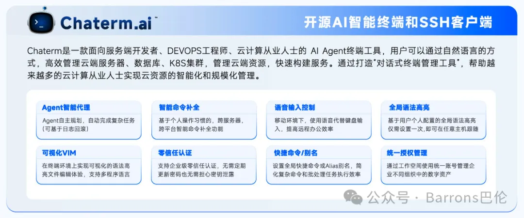 最近,《巴伦周刊》对 Chaterm 的报道引起了我的注意,里面有个观点很有意思:比起单纯的代码补全,AI 在运维领域最大的价值,是把资深工程师的经验资产化。