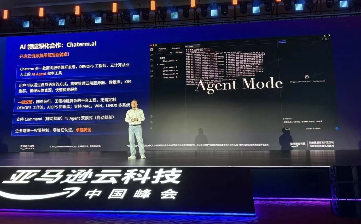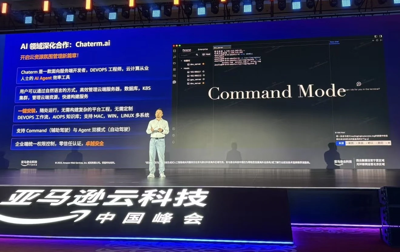 Chaterm作为GenAI优秀优秀创新项目的代表,在AWS Summit Keynote上向全球的开发者们开源了。