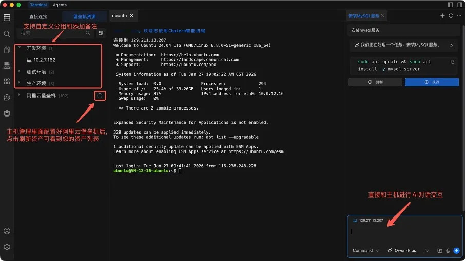 Chaterm 让阿里云堡垒机资产管理更简单高效。