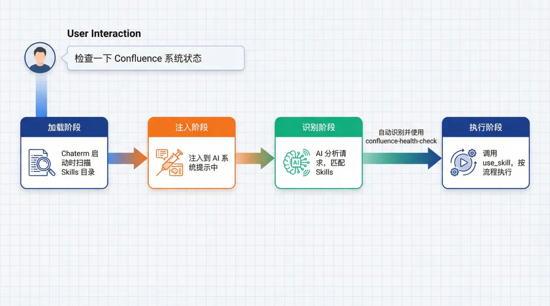 在 Chaterm 里,Skills 的工作流程是这样的:
