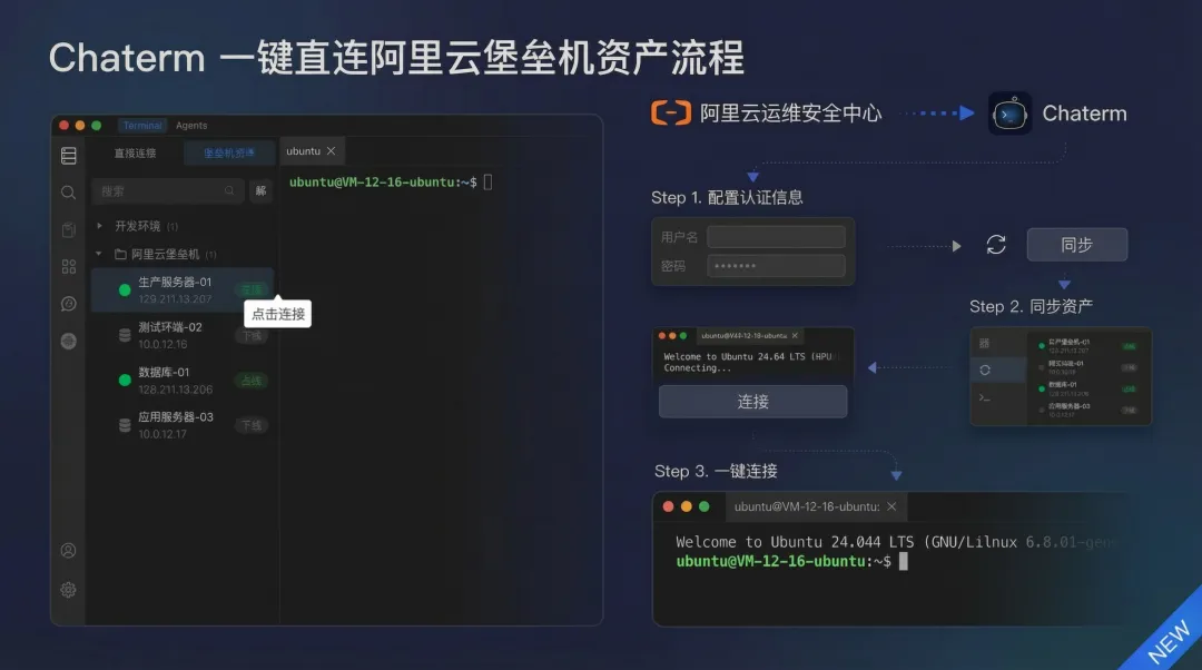 除了Agent Skills, Chaterm还能让你告别传统方式,实现真正的"一键直连"。