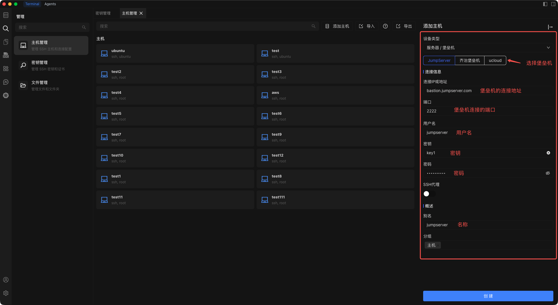 | 密钥 | 选择堡垒机需要的认证密钥 | 是 |