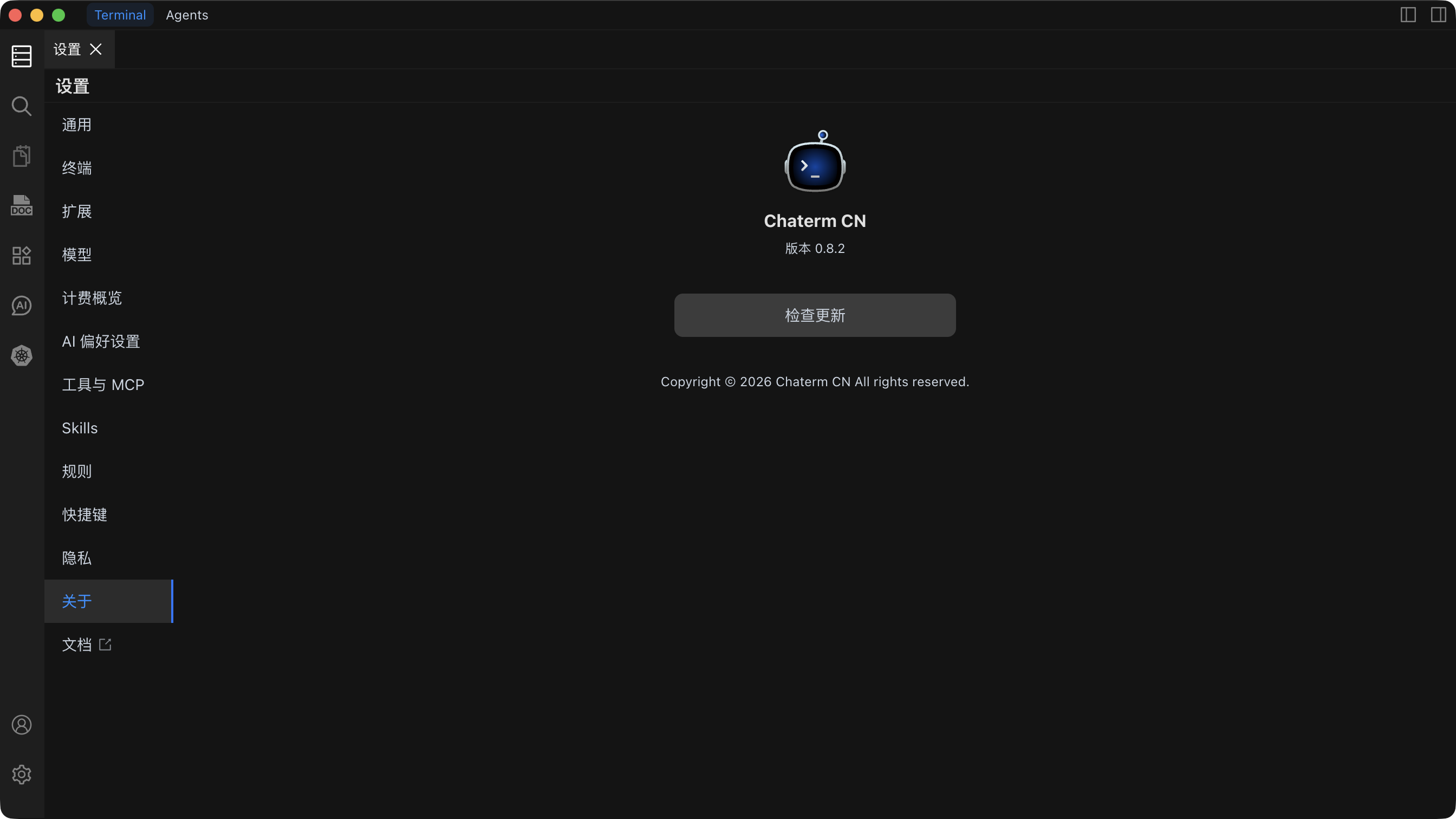 - 当前版本:显示您当前使用的 Chaterm 版本号