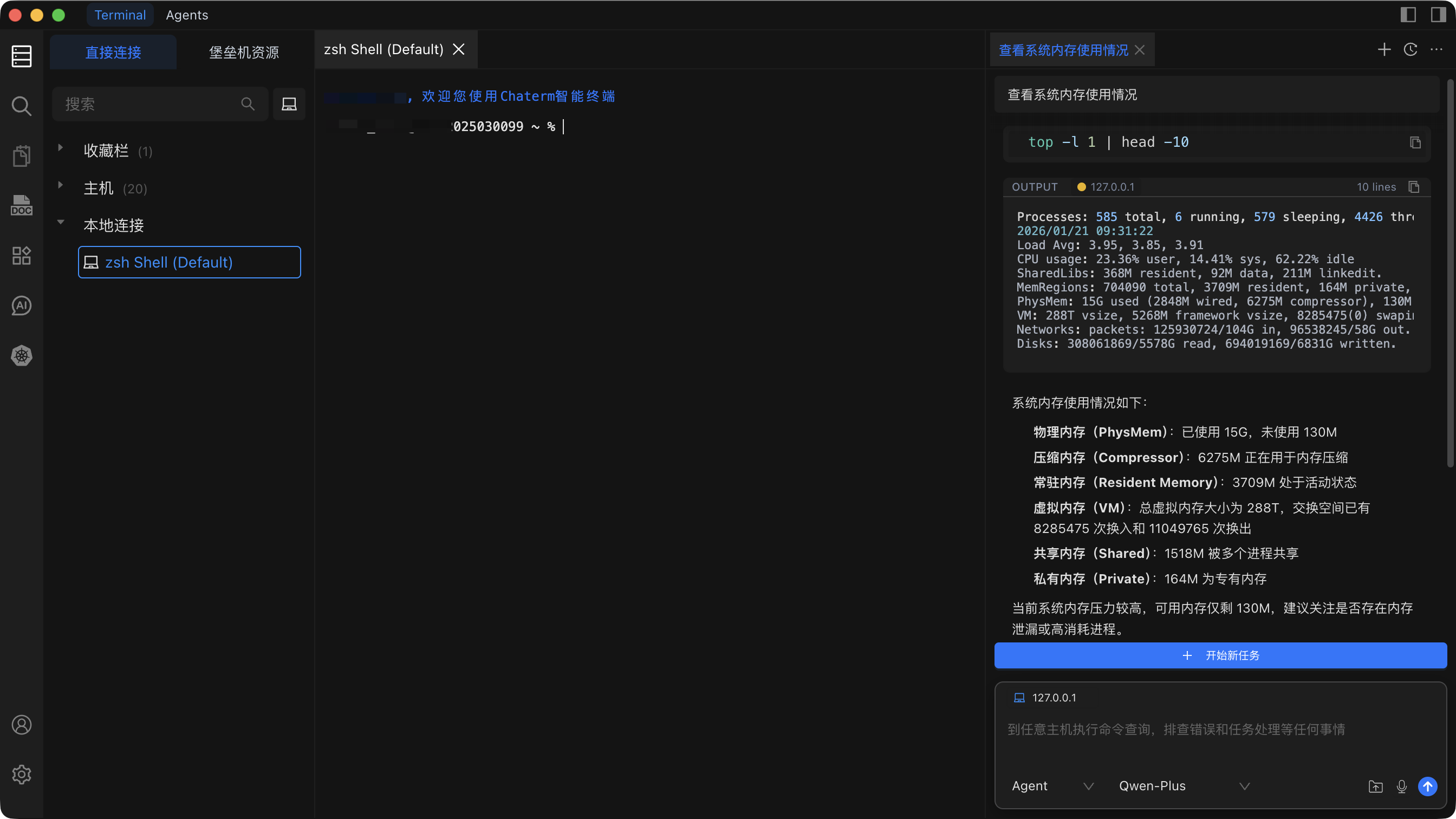 - @主机(Agent 模式):可以 @ 多主机操作
