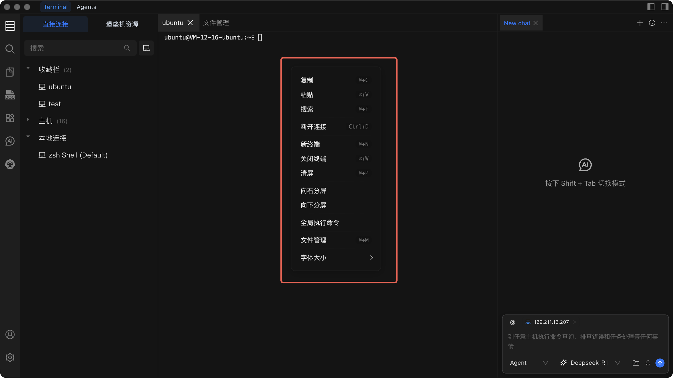 在终端中右键点击,可以访问以下功能: