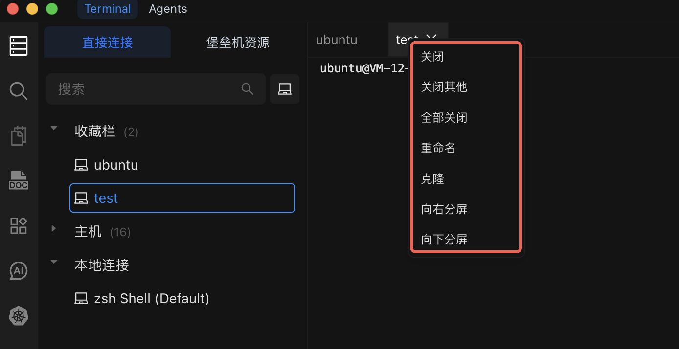 | 关闭其他 | 关闭除当前终端外的所有会话 |